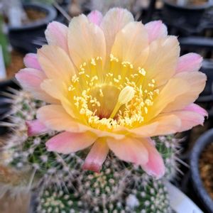 伊藤芳夫交配の美鶴丸。(黄裳丸×白麗丸=鶴羽丸)×紫薫丸 1967年命名。淡い黄色と桃色のグラデーションが最高に綺麗です。 #多肉植物 #succulents #サボテン #cactus #salpingolobiviopsis #美鶴丸