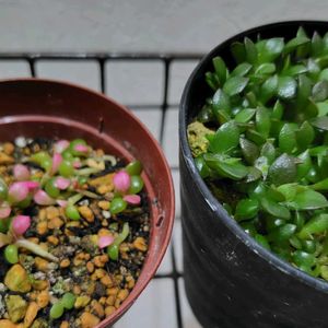弱ってるものクラブ😵 ①ここ数日急な雨に見舞われたせいか、ツメレンゲがシナシナに…😫。 ハニマルもシェ~ってなってる😂。 南向きの室内管理にすべく、まとめて植えました。 ②飛騨高山で見たあのツメレンゲを目指して✊️。ゼッタイムリヤン🙄 ③アナカンプセロス吹雪の松🌳。 ヘナヘナやけど、去年の写真を見ると春頃から元気になるみたい? 🎅🎄に向けて準備中の🚂をちょい出し。