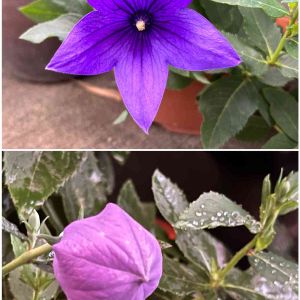 今晩は雨☔ 桔梗🌼昨日の/📷\v・)パシャァです 今日は 雨☔が降ったり止んだり😅 明日はえぇー天気🌞になりそうです😊