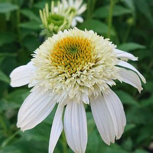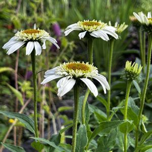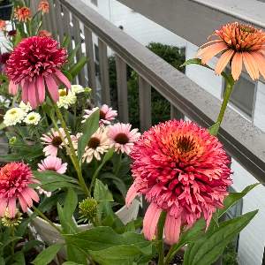 おはようございます╰(*´︶`*)╯♡ エキナセア ホワイトダブルデライトさん🤍 爽やかな色の可愛いエキナセア🤍 こちらも咲き始め真ん中ライム🍋‍🟩色からだんだんとレモン色に😍 真ん中、よく見ると一つ一つ小さなお花が咲いて来ます🤍 ③ 奥にぼんやり写ってるハニーデューさん\(//∇//)\ ④ エレガンスさん、フラミンゴ🦩色が混ざって可愛い色😍 ⑤ 今年お迎えのブルーベリーチーズケーキ🫐さんが咲き始めました (=´∀`)人(´∀`=) ワクワク💕 昨年、こちらで初めて見て気になっていたお花🫐、春に見かけて速攻お迎えしました😍 他にも四つ咲き始めのデビュー待ち組、変化楽しんでから投稿?いやいや、もう投稿しちゃう?迷ってます😁💕 暑い夏も寒い冬もへっちゃらエキナセア💕花持ちも良く、植え場所もどこでもOK💕見かけたらついついお迎えしちゃいたくなります💕 少し高めですが毎年咲いて、長く咲いて、結果お得な宿根草💕 宿根草って、開花期間短いの多いですがエキナセアは咲き続ける💕(一部、一回咲いて終わるのも🤏ウチダケ?) 鉢植えアナベルも、紫陽花も咲いて来て賑やかになりました😍 ☁️/☀️ 24℃/17℃ 今の所☁️ですが晴れるという事で、多肉ちゃん達、アガベさん、水やりしました٩(๑❛ᴗ❛๑)۶ 明日は☀️29℃予報、ずっと30℃前後続く予報👀