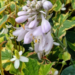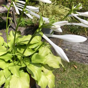 おはようございます🤗 ギボシのお花が咲き出しました😊 葉っぱだけでも綺麗なのにお花が咲いて、華やかさがましますね😊