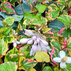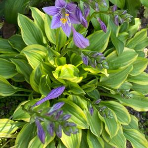 擬宝珠の花です。 薄紫の花がとても上品な感じです。 葉っぱもきれいだから、 花がないときも楽しめます❤️