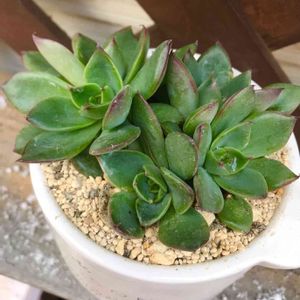 今年たくさん🌟になった七福神 お友達が、また頑張って育ててって 私にくれた七福神の鉢です。 かわいいピンク色の縁が💕 秋の色づきですねー☺️ ダメにしたくないから、朝一番に 様子を見るのがこの七福神さんです😅 カイガラムシにやられないように 気をつけないと😅