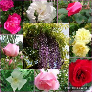 5/12(日)④ みどりのまとめ 「神代植物公園②」が完成しました。 表紙は真ん中の藤の花です。 藤の花と薔薇、オールドローズ、原種系薔薇などを紹介しています。 周りの薔薇は載せた品種ですが違う写真をコラージュしました。 お時間ある時見て頂けたら嬉しいです🤗🎵 「神代植物公園①草木編」よりカラフルなまとめになりました。 よろしくお願いします。 さっきから「投稿できません🌀」「投稿しています🌀」から2枚投稿になってしまいます。 1枚は削除していますので、いいね下さった方々ありがとうございました‼️ごめんなさい😅💦