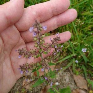 今日出会った草花② ずっと気になってた野草から花が咲いてましたが…予想と違う超小さい薄紫の花の集まり😊