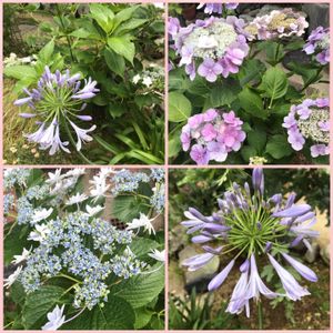 庭のアガパンサスとガクアジサイです。 鬱陶しい時期の清涼剤👍☂️💕