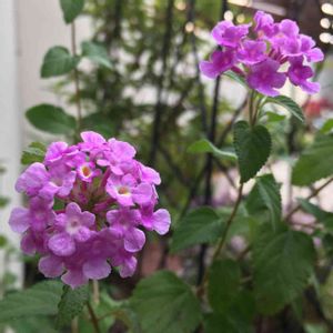 コバノランタナ💕 薄紫を選んで、やっと2輪咲きました💕 あふれるように咲くはずだけど、 1年目の今年は控えめかな?