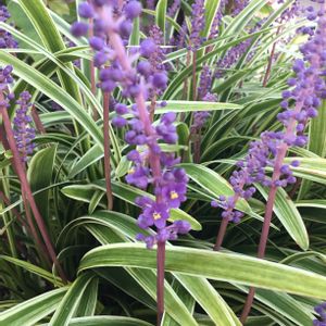 ヤブランの花が咲きました。 いままでは蕾を花だと思っていました これからこの蕾がだんだんと咲くのですね じっくりとお花を見ると可愛らしいです 斑入りの葉っぱもいつも青々として元気が貰えて大好きです💕