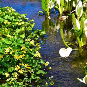 面白いものがありました。これは見るのは初めてだなあ😍 アメリカミスバショウ(キバナミズバショウ)で北米に分布する種です。ちなみにサトイモ科ミズバショウ属には、ミズバショウとこれの2種類しかありません。 ミズバショウはほとんど匂いがしないと思うのですが、これは臭いらしいです(水の上で嗅げなかった)😓 ザゼンソウと同じく、スカンクキャベッジと呼ばれるそうな…