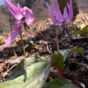 春ですねえ、ここにもカタクリのピンク花😍 ところで、カタクリの寿命って、平均40〜50年もあるって知ってました❓ これを知った時はビックラこきましたよ😳 すげえ❗️人間50年 平敦盛じゃんと… スプリングエフェメラルの一つで、一年のうち地上にあるのはほんの2ヶ月くらいなのにね😊 そのせいで花を咲かせるようになるのは、8年ほど掛かるそうです。花を咲かせる栄養をためるまで時間が掛かるので…