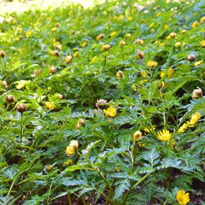 フクジュソウです。 まだ花は残ってますけどもうすぐ終わり。 葉っぱ🌿が、なんかの野菜みたいに繁ってます😍😆