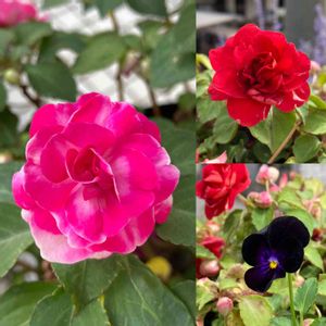 薔薇咲きインパチェンス2種と インパチェンスの鉢に どこからか飛んできたビオラ😊 いつまで咲いてくれるかな☺️