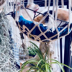 夜のまめちゃん 最近のお気に入りはこのハンモック チラ達のミスティングタイムになるとぴゅっと逃げるけど 終わるとココに戻っちゃう… お布団で寝ようよー 寂しいよー