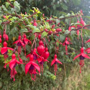 フクシャ(ホクシャ) エンジェル・イヤリング 萼が鮮紅色❤️で花弁が紫色💜の花。 上品で綺麗な姿は「貴婦人のイヤリング」との愛称をもつ花として知られています。 下に向かって花を咲かせる姿が特徴的。 夏越しが難しいのが難点❗️ アカバナ科 フクシア属 原産地: 南米 別名: ひょうたん草 釣浮草 フューシャ フューシャピンク 開花期: 4〜7月/10〜11月 花言葉: 「信じた愛」「恋の予感」「交友」「信頼」