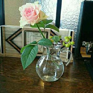 実家に咲いてたバラ一輪 連れて帰ってきました。 世話人が誰もいなくなっても、毎年、いろんな花を咲かせてくれる庭。 花を見る度、フィードバックする思い出の数々…