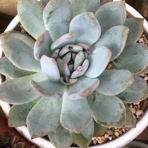 【エケベリア属 ラウリンゼ】 Echeveria 'Laulindsa' ラウイ×リンゼアナの交配種 薄っすらと白いパウダーで覆われた グレイッシュブルーの葉、 同じパウダーのついたオレンジの花、 そしてちょこんと見える赤い爪… 愛してやまない【ラウリンゼ】です 焦げやすいのが難点ですが、 ラウイより気難しくなく、 冬を乗り切ってくれました❄ 画像のラウリンゼは、 確かうちに来て2年経った物🌱🌱 今年の夏も無事越せますように☀ 「1972年にEric Waltherによって栽培中の植物から最初に記述され、後に(メキシコ)ハリスコ州のVolcándeTequilaで成長していることが発見された植物 現在、E.colorataの一種と見なされている この交配式は、カリフォルニア州サリナスの故late Robert Grimによって作られた 〜中略〜 2013年にサンルイス・オビスポ地域の多肉植物栽培者で、養樹園主のNick Wilkinsonから最初に受け取り、Nick Wilkinsonは韓国の植物学者であるSeong Ju Hwangから受け取ったと言われている」 ☆Source☆ 【San Marcos GROWERS】 https://www.smgrowers.com/products/plants/plantdisplay.asp?plant_id=4194