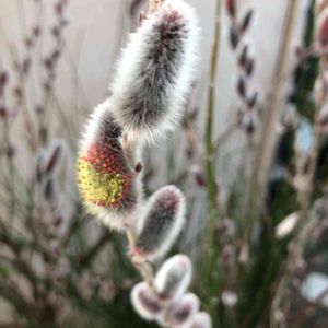 お花が開いてました ネコヤナギ 雄花のようです 花粉も全開! 🌱ネコヤナギ ヤナギ科 ヤナギ属