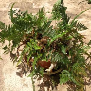 トキワシノブ。 かなり昔、100円ショップダイソーで小さな株を購入😃 それ以来トイレのインテリアとして頑張っています。 今日はホコリをおとすために、外でシャワー浴びます😆 昨日から間もなく2歳の孫がお泊り中、動かない花たちが楽で良い😂