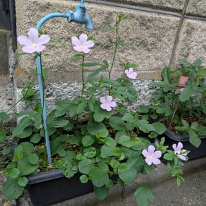 こんばんは🌙*.。 昨日は午前中まとまった☔️が降ったので今日は水やりおやすみ( ᵕᴗᵕ )✩⡱ 一昨日ホームセンターで見つけました > < ♡⸝⸝⸝💡´- 🌺ハイビスカスロバツス🌺 昨年から皆さんの投稿見てて欲しくて≡(⊇♡.♡)ホシィー! こんな小さな草花みたいな子だとは知らずにハイビスカス🌺のコーナー探していました🤣 園芸店では出会えずまさかのホームセンター! しかも見元さんの苗🌱でした♡*. 今朝初めての開花🌺 ベビーピンクの小さなお花🌸 とっても可愛い(*´˘`*)♥ 夕方には萎んでしまうんですね𓏧 植え付け🪴したので次々と咲いてくれると良いな♩
