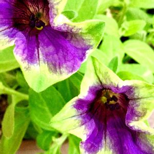 🌱ペチュニアナイトスカイ🌪台風🌪 よ〜く見ると星空🌟里帰りから帰ったら1輪咲いてたよ✨🌼✨