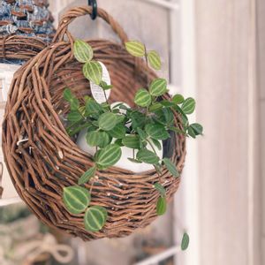 このカゴ🧺どうやって使おうと思ってて🤔 ペペロミアがピッタリフィット‼︎ 窓際で日当たりが良くどんどん可愛く垂れ下がり中🍀😚🥰