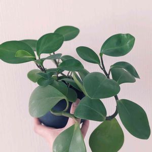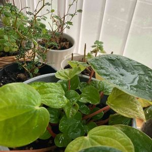 ペペロミア(暫定)。 葉がプックプクでかわいい。 なのに運搬で2枚落としてしまった。。 ごめんよ〜。 ダメ元で水挿ししてみるよ。