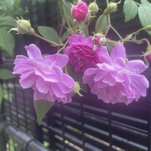 雨が降る前に 撮った 上から枝垂れる感じのバラたちです ① マニントン モーヴ ランブラー 少しづつ咲きだしました ② 去年 夏前に切ったら 葉が落ちて 枯れたかと思った プロスペリティ 復活〜🥰🤍✨ ③今年は元気の無いグラハムトーマス💛 ④ピエールも酷い薬害で 今年は花数 少ないです (はい 私がやりました😭) ⑤ 枝垂れてないけど カンパネルラが咲いたので🥰🧡