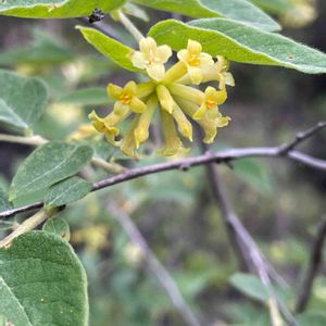 ガンピ(雁皮) ジンチョウゲ科ガンピ属の落葉低木 別名 カミノキ(紙の木) 高級和紙の原料として有名なガンピ。 尾根道で、多く見られました。 他の樹木に混じって生えているので、花が咲いていなかったら、見つけにくそうですが、 淡い黄色の花が咲き始め、目立っていました。