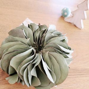 急に涼しくなったので、玄関にかけていたリースを秋仕様にかえたくなりました。 今まで飾っていたミモザのリースを解体して、リース台は再利用。100円ショップのリース台のくせに、貧乏性なので、いつも再利用してしまいます。 ベースはユーカリ・ポポラス。 ちょうど庭の鉢植えユーカリを剪定したかったので、庭で切ってきました。いい香り。 コットンは今年うちで育ててできたものを利用しました。 その他の花材はすべて少し前に生花として家で飾っていたものです。 ドライアンドラフォルモーサは葉っぱもギザギザしててかわいかったので、お花の部分をカットして使用し、残った葉っぱも花材として使用しました。