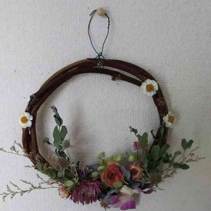 おはようございます 今日も良いお天気☀️です 昨日作ったリース😊 アカシアの土台にドライのバラとライスフラワーを付けました🌹 ロマンチックな感じにしたかったのですが 成功してますか?😅🍎