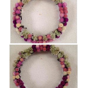 出来ました😄 ドライリース🌸 考えてつけていったつもりだけど、、紫色が強すぎて、、もっとスッキリが、良かったかな😊