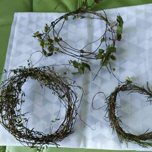 リースベース実験中……📝👓 何がどんな風になるか…… ベースに適しているか…… GSで教えていただいたもので 実験中です(^.^) ⬆はハツユキカズラ ⬅はワイヤープランツ ➡はローズマリーです❗ 10日経過……