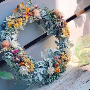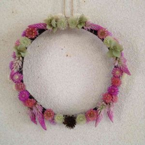 こんにちは〜(^∇^) 色々集めて小さなドライリース作りました🌸 センニチコウ、サマーラベンダー、オレガノ、エキナセア✨