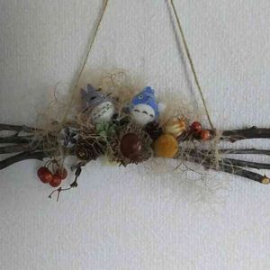 トトロのブランコ~(*´∀`)🍁 木の実のリース作ってたら なんか乗せたくなり…… 馴染んでる(笑)😊