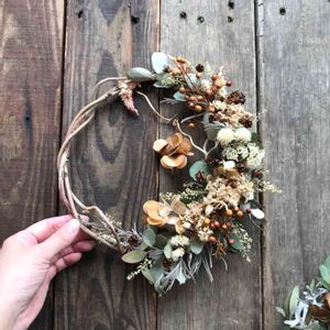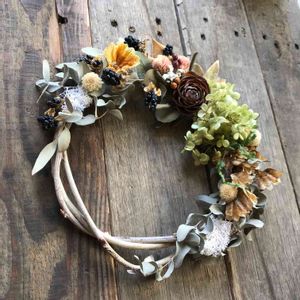 ワークショップでハロウィンリース作り🎃 ソラナム、アジサイ、グラビア、 トータムローズのドライで作成