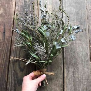 ちっちゃなハーブの束ですお庭でとれた自家製のミント、ラベンダー、ユーカリ、ローズマリー