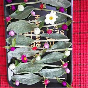 アート🎨(笑) ラムズイヤーと千日紅…… そろそろ終わりかな…… 並べて乾燥中(*^.^*)