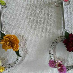 ドライ飾り~😆💕 100均の茶こしで作成(笑)😁 前に作ったのを作り直ししてて網が破けていたのでそのままエイっと剥がしてみたら……なんとチビリースに💞 リボンクルクル巻いて ぎんちゃんヘリクリさん張り付けました😃 チビヘリクリ活躍してます(^-^)v