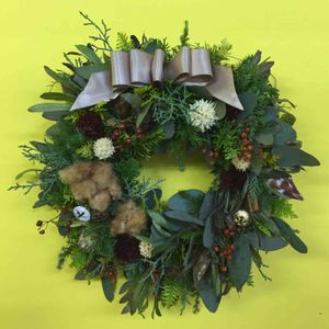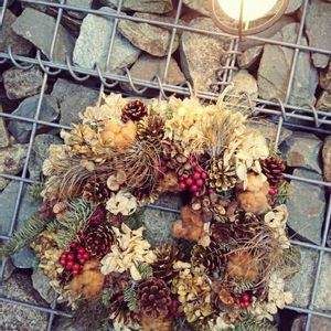 リースレッスンに行ったときのものです。 もふもふが可愛い♡ ユーカリ ポップブッシュ バラの実 コニファー 松の葉 松ぼっくり