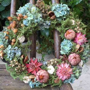 週末は実家行き、のお土産リース あちこち探してたあじさい、なんとお隣に✨しかもいい感じ 花より団子の両親ではあるけどね😅 団子のほうは、収穫したサツマイモ、カボチャ、落花生、でいいかな。。。