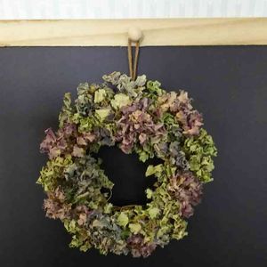 紫陽花リース……🍀 自然ドライでクシュクシュになった3色の紫陽花…… 微妙な色合いが好きです😌