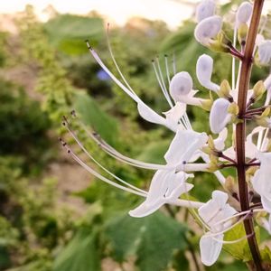 ねこのひげという可愛い名前の植物🪴 初めておむかえしたけど、元気にいっぱいひげをつけてくれています☺️ 植物は好きだけど、うまく育てるのは少し苦手です💦 だけどこの子はすくすく☺️ よく見ると白から、先の方は紫にグラデーション😳
