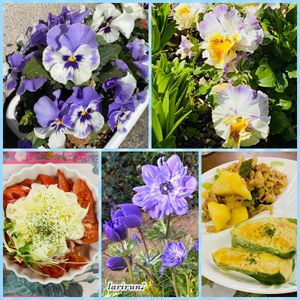 秋に植えたパンジーが 近頃 又盛り返してきて嬉しい(∩´∀`∩)💜🌼 こうして見ると春の庭には 紫色の花が多いなぁ💜👀 最近 二女がよくご飯作りを手伝ってくれて いつもと違うものが食べられて楽しい ↙️これは私がよく作る玉ねぎのせのトマト🍅 ↘️ツナマヨをピーマンに詰めて チーズを載せオーブントースターで焼いたもの 肉詰めよりヘルシーで食べやすかった😋 奥は 味噌ベースの肉じゃが炒め