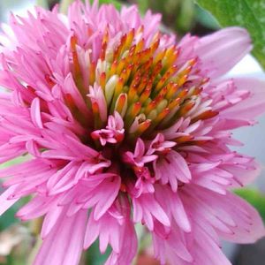 花友さんから貰ったエキナセア、無事に咲いたよ🌸 日に日に中心がもりもりしてきて、なんか面白い❣️ かわいい子をありがとうね🥰 午後からまた大雨☔️⚡️ 最近変な天気💦