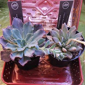 仕事帰りにホームセンターに寄ったら、綺麗で可愛い子がいたので連れ帰りました💖 パキベリアのクレアとリトルエンジェルとセダムのアドルフィーファイヤーストームです🤗