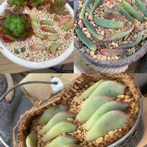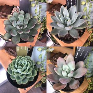 昨日狩った多肉ちゃん(๑♡ᴗ♡๑) 左上→クレア 右上→リトルジュエル 左下→ライムアンドチリ 右下→オパリナ