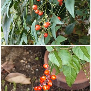 【1枚目】 赤玉対決‼️ うちのナンテンvsうちのジュズサンゴ。ナンテンの実もだいぶ色づきました🔴🔴🔴 【2枚目】 もふもふ対決‼️ パンパスグラスvsイトススキ(農業試験場内にて)