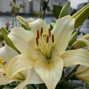 散歩道🚶、 1️⃣2️⃣ユリ 3️⃣4️⃣レウィシア 咲いてます🌸🌸