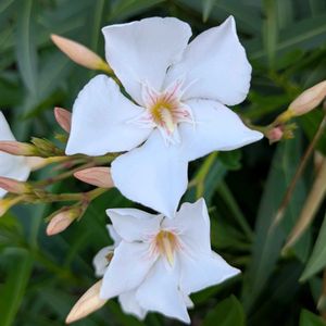 散歩道🚶、3色のキョウチクトウが咲いてます🌸🌸 1️⃣白 2️⃣ピンク 3️⃣4️⃣黄