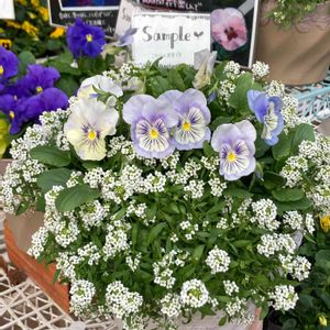 売場に かすみ草 ジプシーピンク を 見つけましたが、その こんもりした 1 苗 の中に ビオラを 1 つ 忍ばせている ...... って 言う展開の 苗で 、なかなか 面白し、綺麗だなぁ〜💓 って 思いました❣️ 手前の 2つ を 購入 💕🌸 ( 平塚 木村植物園 にて )